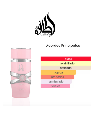 Yara de Lattafa es una fragancia femenina dulce y encantadora, con notas de fresas, orquídeas y almizcle. Ideal para mujeres que buscan un perfume dulce y delicado. 💗🍓✨