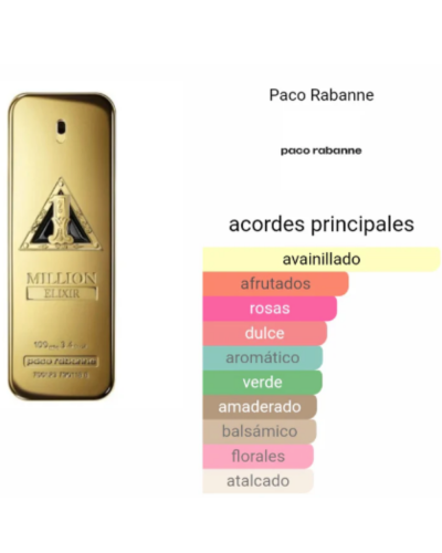 1 Million de Paco Rabanne es una fragancia masculina de la familia olfativa Amaderada Especiada. Fue lanzada en el año 2008 y fue creada por Christophe Raynaud, Olivier Pescheux, Michel Girard y Christian Dussoulier. Las notas de salida contienen mandarina roja, toronja (pomelo) y menta; en el corazón se perciben la canela, notas especiadas y rosa; mientras que en las notas de fondo predominan el ámbar, el cuero, las notas amaderadas y el pachulí hindú.